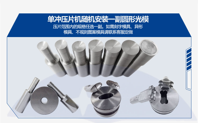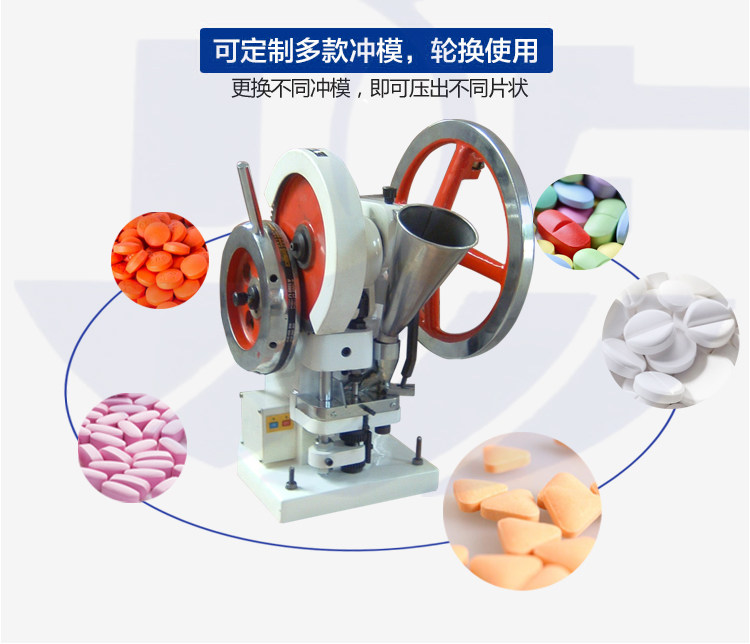 通過(guò)換裝不同的沖模壓制不同大小形狀的片劑。