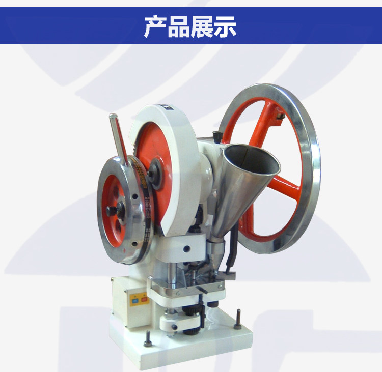 YP-5T單沖壓片機(jī),用以將各種顆粒狀原料壓制成圓片或其他異形片狀的片劑設(shè)備。