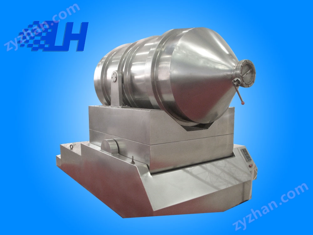 EYH二維混料機的轉(zhuǎn)筒可同時進行二個運動,一個為轉(zhuǎn)筒的轉(zhuǎn)動,另一個為轉(zhuǎn)筒隨擺動架的擺動。被混合物料在轉(zhuǎn)筒內(nèi)隨轉(zhuǎn)筒轉(zhuǎn)動、翻轉(zhuǎn)、混合的同時,又隨轉(zhuǎn)筒的擺動而發(fā)生左右來回的摻混運動,在這兩個運動的共同作用下,物料在短時間內(nèi)得到充分的混合。EYH二維混料機適合所有粉、粒狀物料的混合。